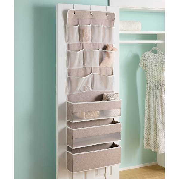 9-Pocket Fabric Hanging Closet Organizer with 3 Deep Shelves and Adjustable Strap