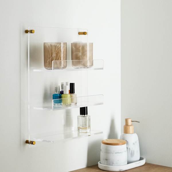 Shocase your décor and maximize your space in style with this clear acrylic wall shelf. 3-tiered shelves keep your items in order, while the wall-mounted design saves space.