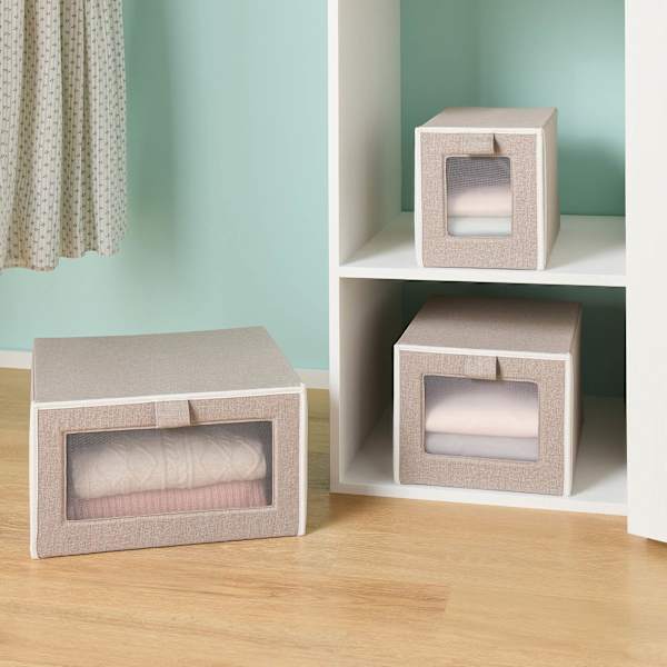 Create a space that works harder for you with storage that blends form and function. Soft-sided fabric bins make it easy to corral clothes, shoes, or accessories while adding a tidy finish to any closet. Lightweight yet durable, these bins slide neatly onto shelves or cubbies.