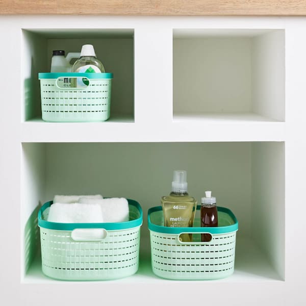 REAL SIMPLE Green Rattan Storage Basket, Large