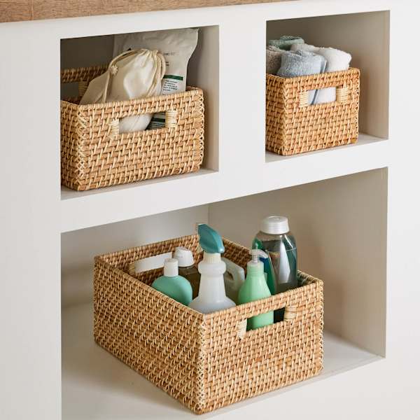 REAL SIMPLE Rectangle Rattan Storage Basket, Small