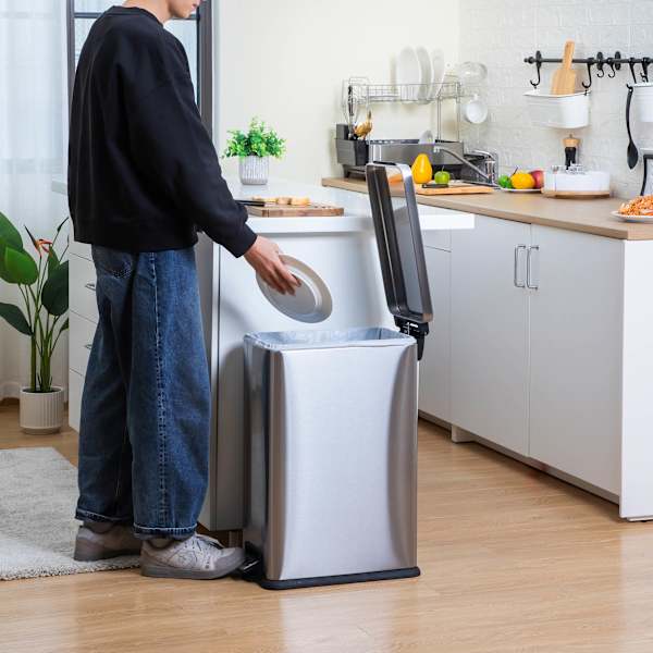 Keep your space spotless with trash cans designed for everyday durability and a modern, streamlined look.The sleek design of this stainless-steel trash can combined with its additional features, makes it as practical as it is modern.