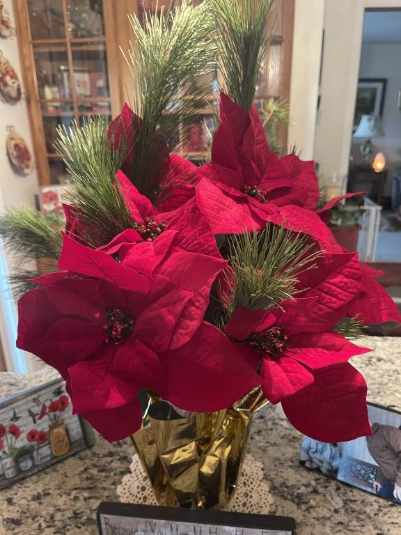 Christmas Red Poinsettia in gold foil pot