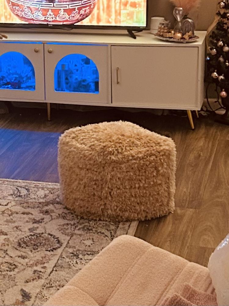 This pouf is beautiful and sturdy but sheds like a dog losing hair. I have to vacuum daily to avoid a trail all over my office.