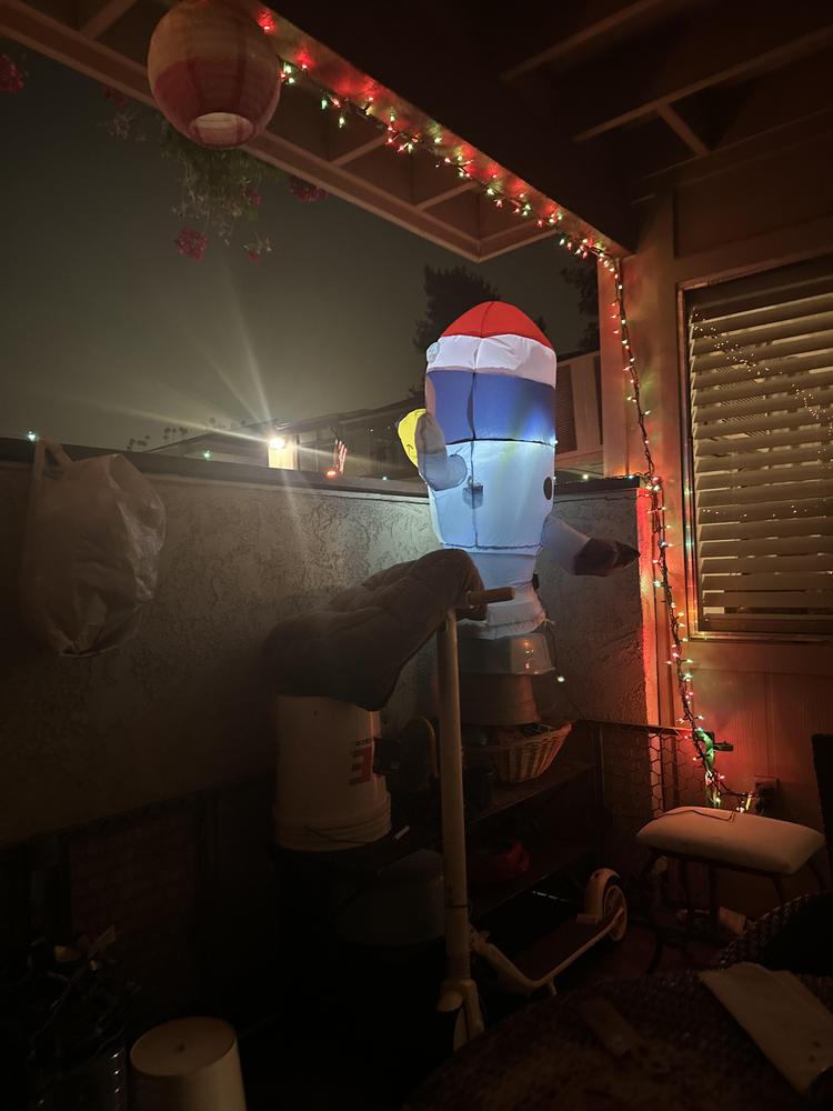 It is a very cute decoration, the kids love it. It is very easy to set up and affordable. The only downfall is that the stakes do not do a great job keeping the inflatable in place