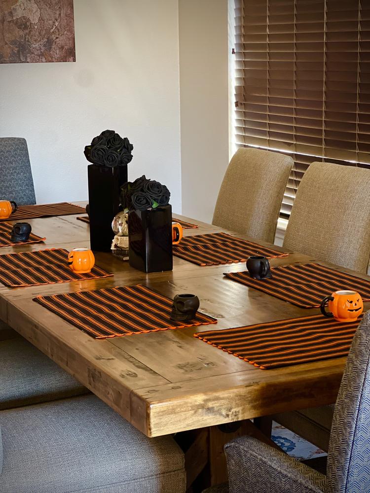 Set of 4 Orange & Black Ticking Striped Placemats, 13x19