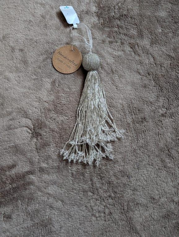 This delightful Silver Beaded Tassel Beaded Cord adds a touch of whimsy to any space. Adorned in enchanting silver, it's the ideal accessory for those who appreciate a touch of color in their decor. Suspend it in your favorite spot, and let the beaded tassels dance with the breeze.