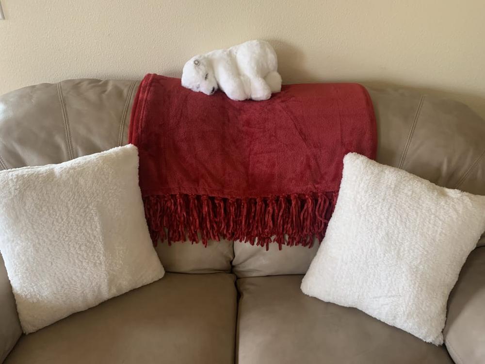 Bring cozy calm to your holiday scene with the 11in. Silver Faux Fur Sleeping Polar Bear. This softly textured, white faux fur tabletop figurine curls into a peaceful pose with a gentle silvery sheen, perfect for mantel, shelf, or table displays. The minimalist look blends with winter, woodland, and Scandinavian Christmas decor. This resting bear tucks neatly into centerpieces and small vignettes. Style with twinkling lights and frosted greenery for a serene, snow-kissed moment. A timeless accent that adds quiet charm all season.