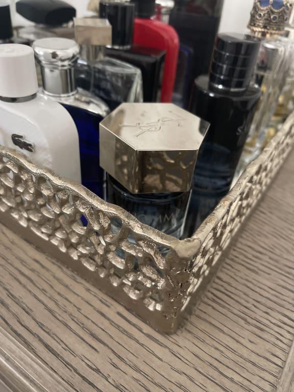 Perfect for displaying your favorite candles, small decorative items, or organizing your essentials, this trendy tray seamlessly combines fashion and functionality. Its metal construction makes it a great choice for daily use or special occasions.