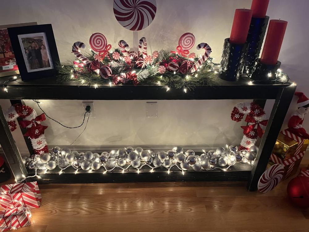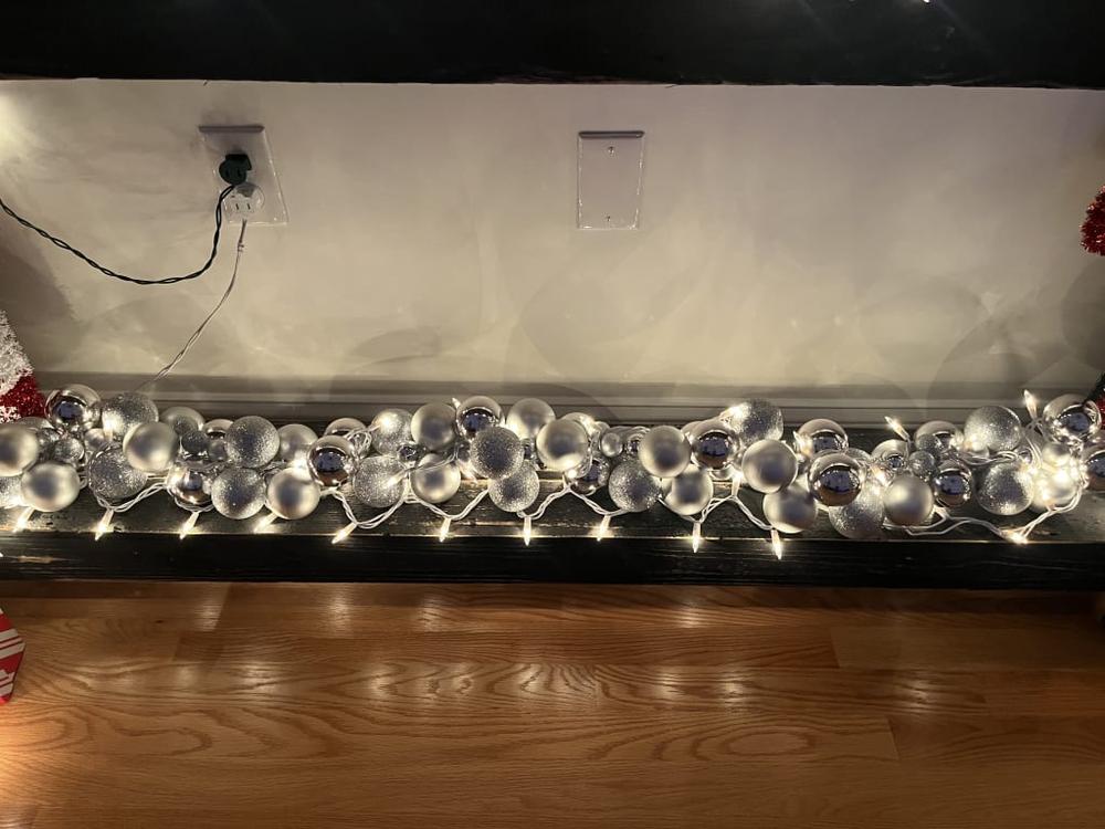 Sprinkle some magic into your living space this festive season. Our enchanting array of Christmas and holiday décor brings joyous vibes wherever they go - whether it's twinkling lights casting a warm glow or whimsical figurines adding an extra dose of charm. Our 72 in. silver ornament garland is the perfect addition to your holiday season. This different size ornament garland is versatile, and is able to decorate mantels, stairways trees and more. This garland will bring on the holiday cheer.