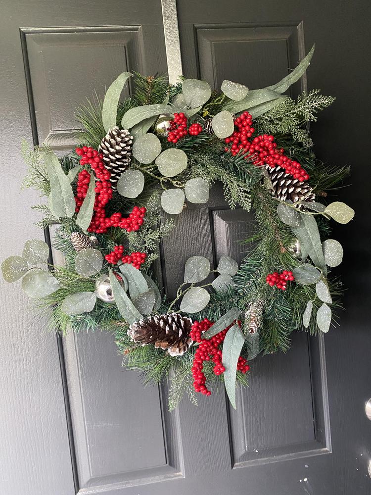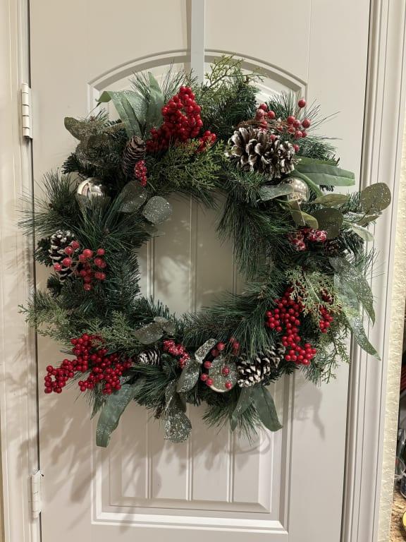 This wreath looks really nice on our front door! The red is very vibrant and gives it a nice pop of color. Everything looks really nice and it feels like it’ll hold up for several years. For the price this is an excellent wreath. Collected as part of a promotion.