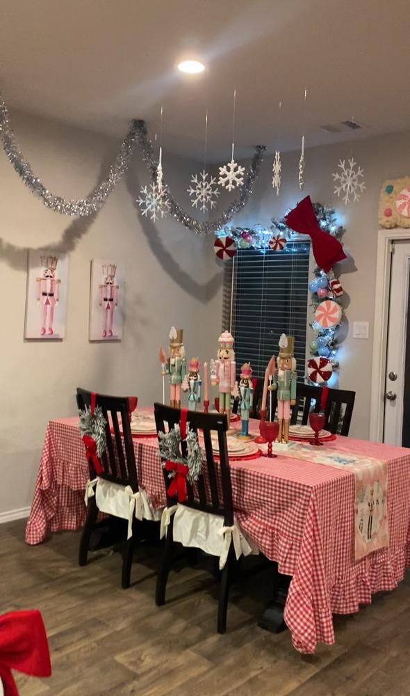 Strung up along our bannister with candy garland as well to lock off the holiday season