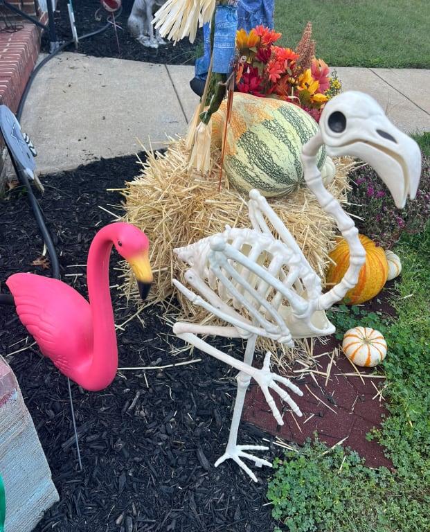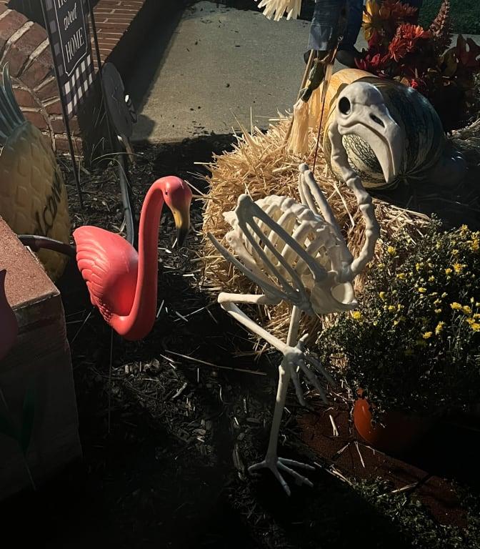 Our 34in. Flamingo Skeleton Yard Stake is the perfect blend of eerie and bone-chilling charm. Constructed of plastic, this realistic bird skeleton adds a touch of scary delight to any decorative Halloween setup. Whether part of a haunted house display or standing guard at the front door, this realistic plastic flamingo skeleton garden stake is sure to be a conversation starter. Featuring a realistic detailed bird design and skeletal appearance, the Skeleton Flamingo is perfect for the spookiest night of the year.