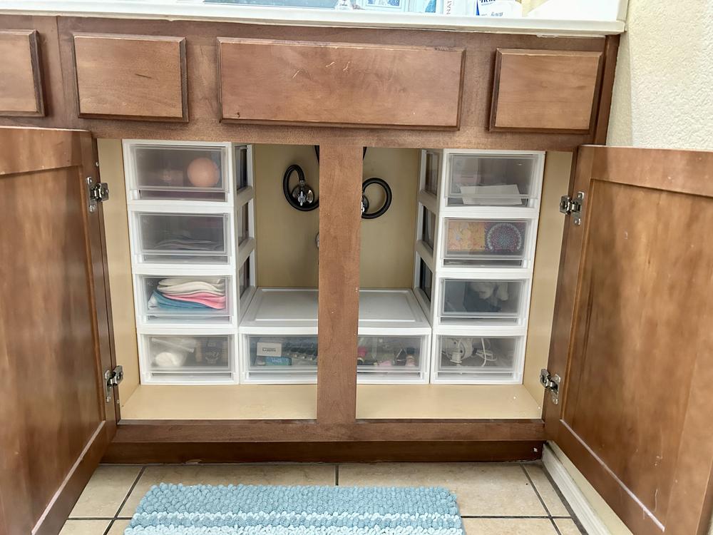 These stackable drawers are versatile and practical, allowing you to create a customized storage system that fits your unique needs. Whether you need to declutter your office, kitchen, or bedroom, our Small Clear Stackable Drawer is up to the task.