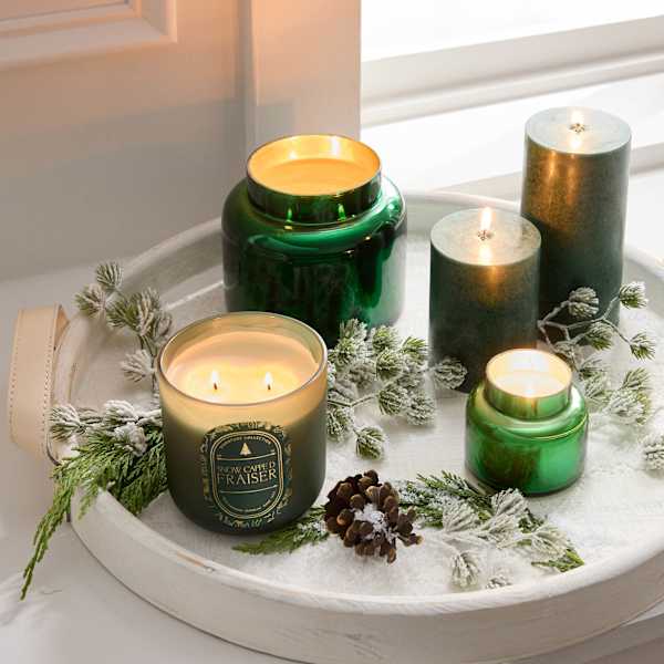 Say hello to the 12.5oz. Snow Capped Fraiser Scented Jar Candle, a fresh take on holiday ambiance. Crisp evergreen and cool winter air notes drift through your space with an aromatic, forest-fresh vibe. The timeless green glass jar adds a classic touch to Christmas decor and everyday styling. Light it to create a calm, inviting mood for gatherings or quiet nights. A simple way to bring that Fraser for feel home.