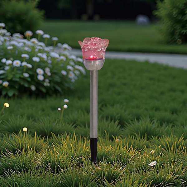 Solar lights will light up your summer nights! Our Solar Color Changing Rose Pathway Light has a solar panel that absorbs the sun's energy during the daytime and turns on at night automatically. Place one or many throughout the garden and enjoy your warm summer evenings outside with just a touch of mood lighting.