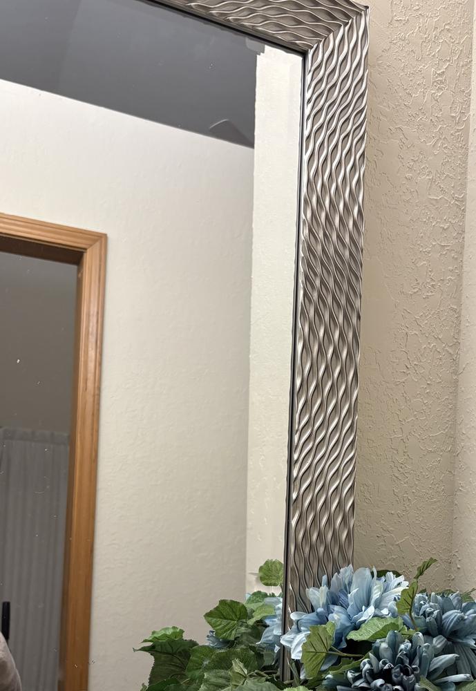 Mirrors just add a touch of glam anywhere they're placed, and our 36x46in rectangle solid wood waves silver wall mirror is no exception. Whether you're looking at one last glimpse before you leave the house, or just brighten up your living spaces, adding a mirror like this one is a great option for a useful, decorative accent in your home.