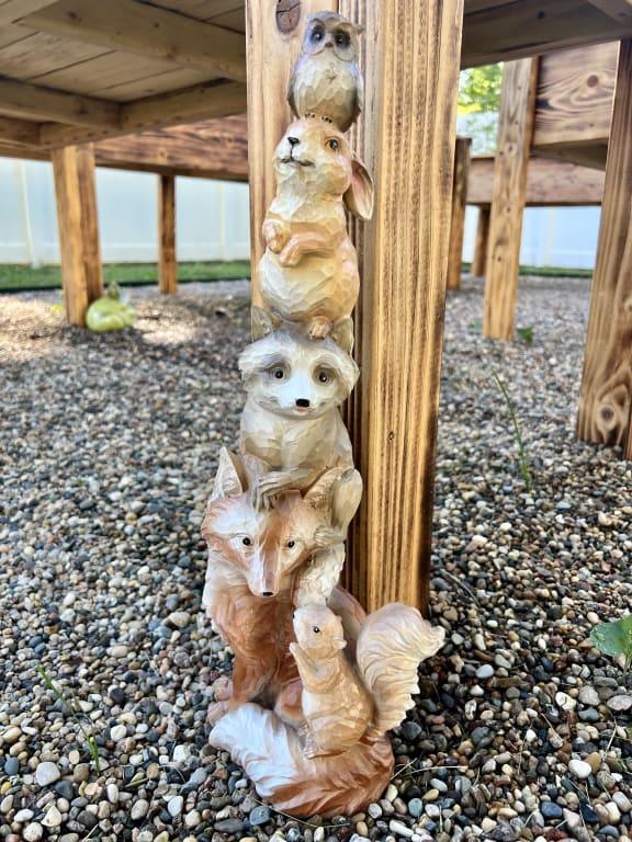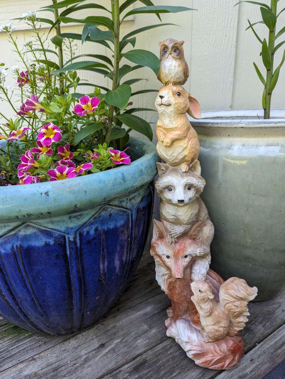 Enjoy the company of these adorable animal friends as they join you in your outdoor oasis. With its weather-resistant resin construction, this statue is designed to withstand the elements and maintain its eye-catching appearance. Whether placed near a flower bed, on a porch, or nestled among potted plants, this stack of critters will be a delightful focal point.