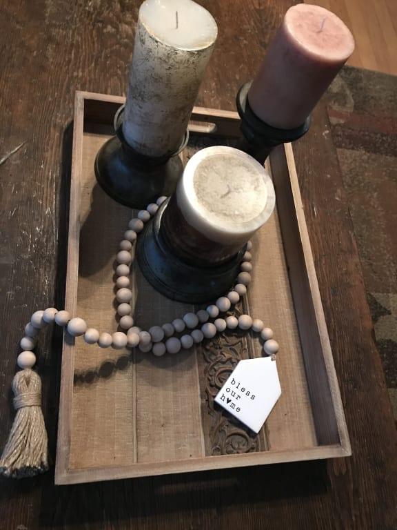Crafted from quality wood, this striped tray combines lasting use with an eye-catching aesthetic.