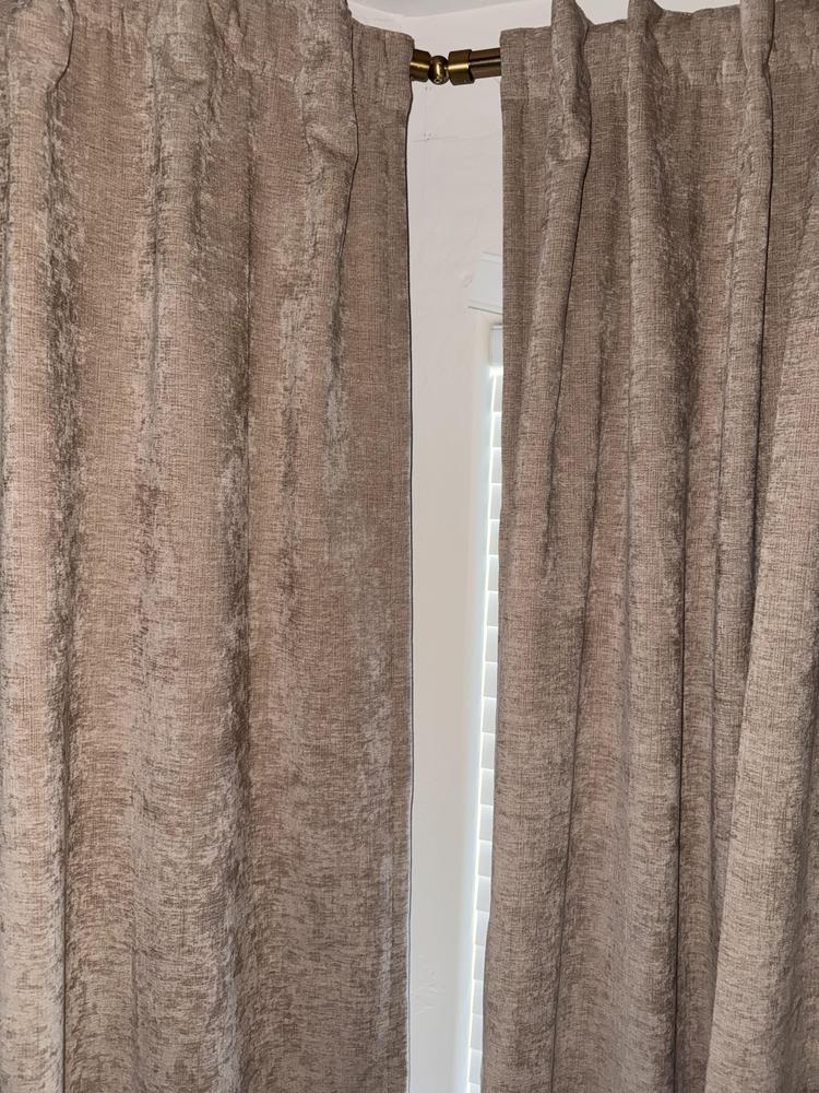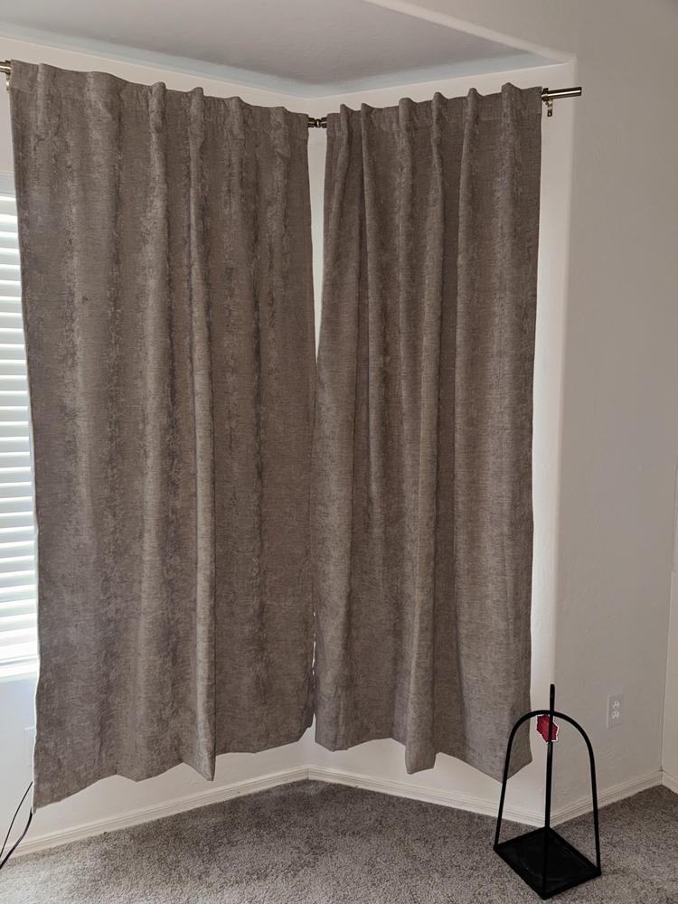 I love these drapes! They were exactly what I was looking for. My favorite thing is the pleat and texture of them, they are velvet but don’t feel super heavy. They block out the sun and you can tell our room feels a lot cooler with them up. I even bought a second pair for our living room!