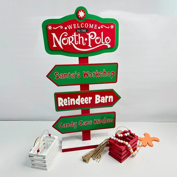 Meet The Elf on the Shelf® 24in. North Pole tabletop sign, a cheerful accent that points straight to holiday fun. The design features bold holiday hues details, and a whimsical directional arrow display. Sized for shelves, entry tables, and mantels. Set it by your doorway, on a console, or as a centerpiece to welcome guests to your own North Pole.