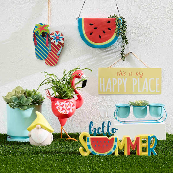 Add a pinch of fun to your garden with our 12in. multicolor “this is my Happy Place” metal wall sign. Created with love, this simple plaque features a colorful yellow, red and white motif. Everyone will enjoy the sweet welcome. Made of rust-resistant metal with a rope hanger, this wall decor is designed to greet guests all season long.