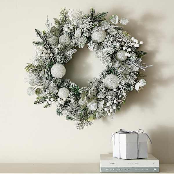 Tinsel Ball, Snow Berry, Eucalyptus & Pine Wreath, 24"