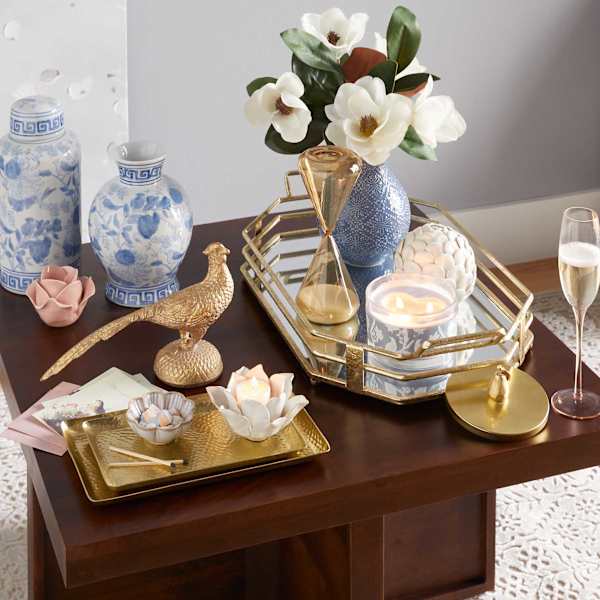 Add a touch of elegance and charm to any space with this 5in. Tracey Boyd Ceramic Capiz Scalloped Sphere figurine. With its delicate mosaic finish and playful design, this figurine effortlessly combines style and creativity. Whether displayed on a shelf, mantel, or table, it is sure to catch the eye and spark conversation.