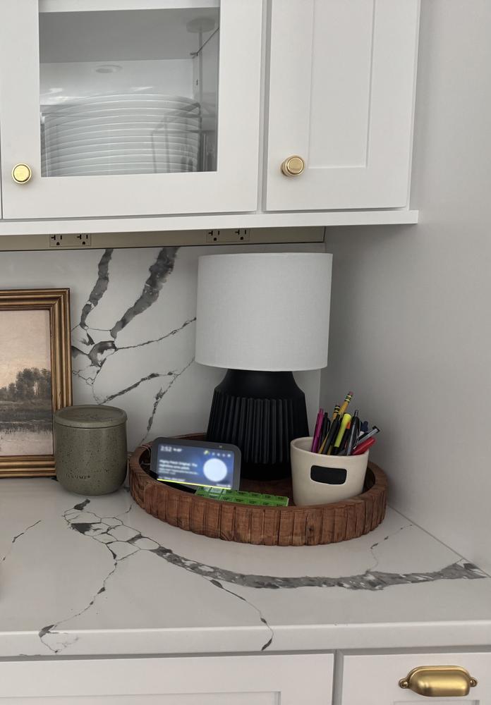 Illuminate your living space with the Tracey Boyd Matte Black Textured Accent Lamp. This eye-catching lamp features a ceramic base with a stunning textured finish, adding a touch of modern sophistication to any room. Its compact size makes it perfect for small spaces or as a decorative accent on a side table or nightstand.