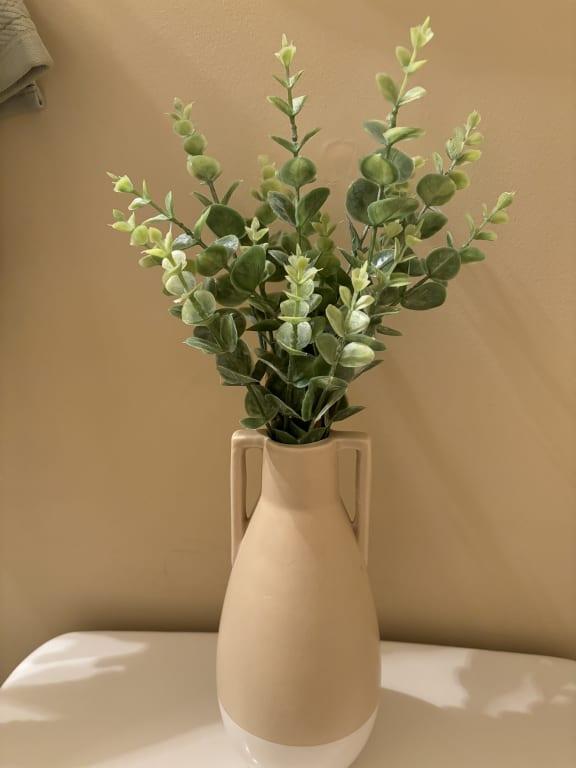 Tan Ceramic Vase With Handles, 13"
