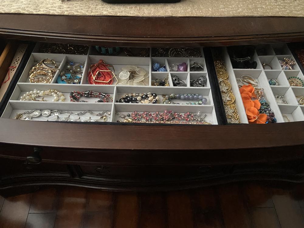 - Rack dividers hold earrings, necklaces, bracelets, and rings.