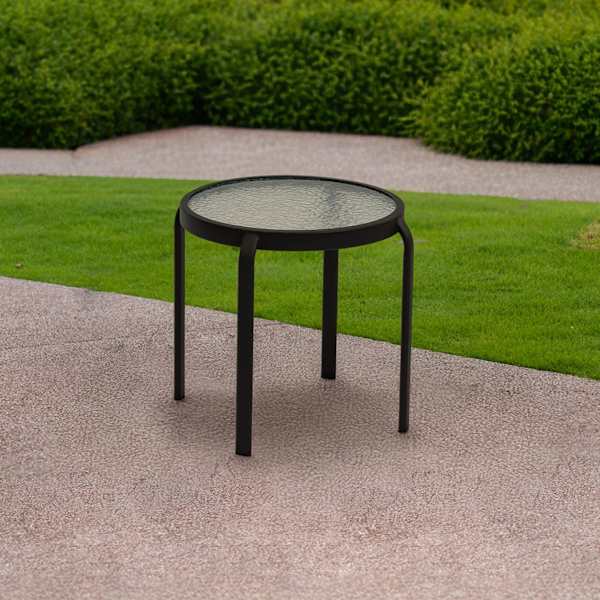 Our Brown Wavy Glass Side Patio Table brings a bit of the contemporary to the occasional table category with the wonderful painted black finish. The side table appears to have been plucked right out of happy and placed directly into your home with its simple construction, details and painted metal finish. Use as a plant stand as intended or as an end or small coffee table, making a visually alluring display.
