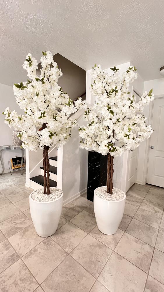 The White Cherry Tree stands almost 6 feet tall, showcasing an elegant fusion of style and natural beauty. Crafted from plastic, this tree features charming blossom greenery that creates an unending floral display.