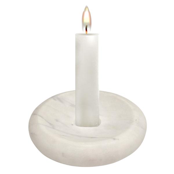 Our 4in. White Marble Taper Candle Plate is made entirely of marble with each one being individual and one of a kind. Polished with a smooth feel and featuring an indention for a single taper candle, this sleek piece is unusual and a simple but nice way to display our favorite candles.