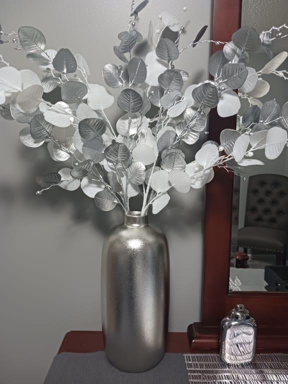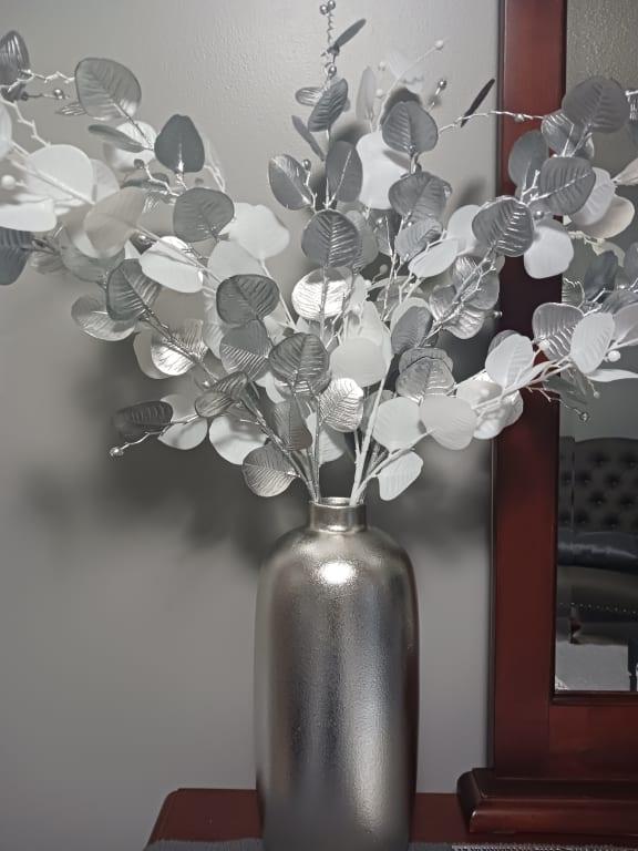 Whether adorning your living room, bedroom, or office, our White Metallic Eucalyptus Spray is versatile and easy to style. Its realistic design and stunning white shade effortlessly blend with any color scheme. Achieve a minimalist and refreshing ambiance that will leave your guests in awe.