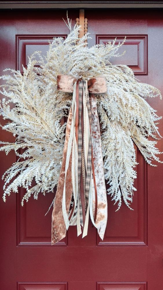 Add a touch of timeless greenery to your home decor with the White Pampas Grass Wreath, 30 in. This wreath features lifelike pampas grass in a pristine white color, creating a stunning focal point for any room. With its Nearly Neutral decor theme, this wreath effortlessly complements a variety of interior styles.