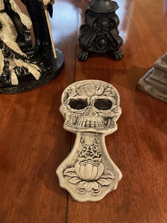 With its unique skull design, this handy ceramic spoon rest is both practical and fun. Keep your countertops clean and tidy, while adding a touch of personality to your cooking space. Whether you're a Halloween enthusiast or simply a fan of quirky kitchen accessories, this spoon rest is sure to delight.