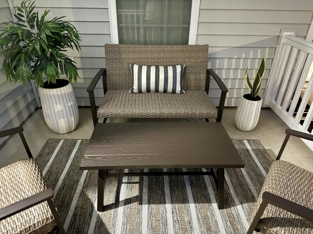 Modern farmhouse meets At Home prices in Honeybloom, our exclusive brand that celebrates life lived together. Turn your outdoor space into a cozy retreat with the Honeybloom 4-Piece Winslow Seating Set. Crafted from metal and wicker, this weather-resistant set effortlessly combines style and functionality.