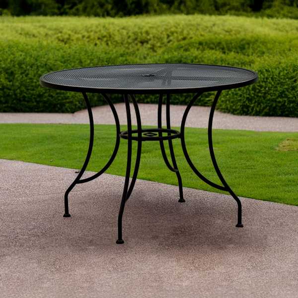 Our round steel outdoor dining table is built with longevity and durability in mind. The black steel frame is constructed from rust-resistant materials, ensuring long-lasting use for many years to come. Made from steel, making it easy to clean and maintain.