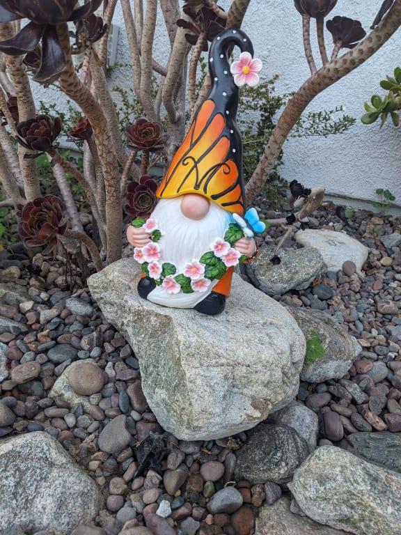 Let this adorable garden statue brighten up your garden, patio, or porch with its vibrant design and charming presence. The solar-powered butterfly adds an enchanting touch, providing a warm and welcoming glow when the sun goes down. Whether you place it next to a flower bed or nestle it among your plants, this statue is sure to bring a smile to your face and a sense of joy to your outdoor oasis.