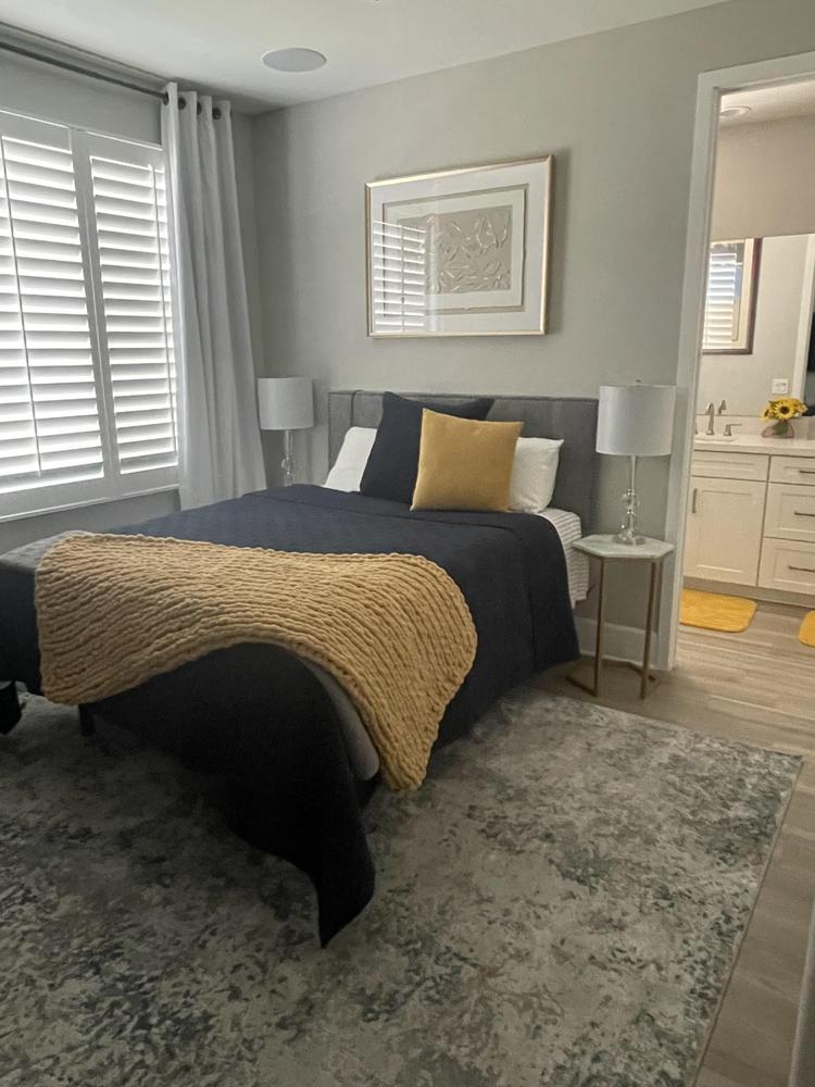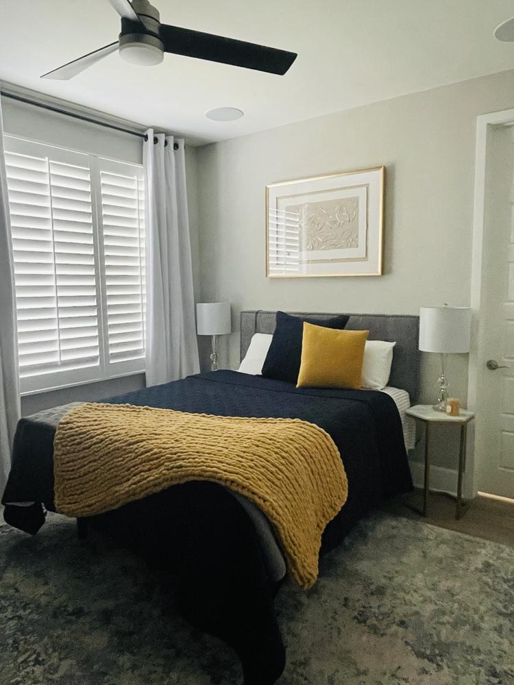 Honey bloom throw and candle on nite table